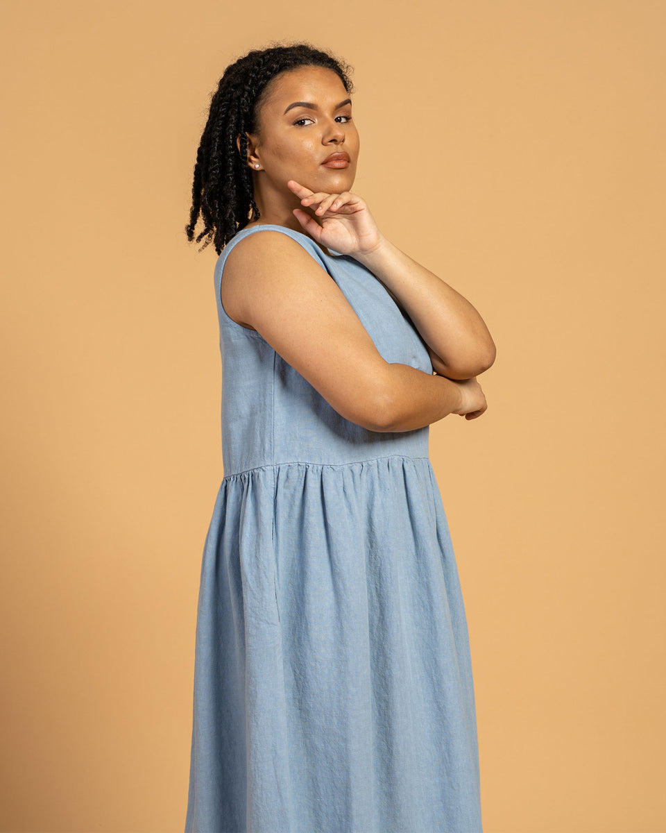Whether you are planning to dine alfresco, travel to the beach, or simply on the hunt for a comfortable option to wear at work during hot and humid summer days – Eliza dress is essential. Made from a soft and airy 100% Linen fabric, the midi dress has all of the features a girl could want, including a flattering round neckline, a flowy hem, and adorable smock front. Inject some color into your wardrobe with our cinnamon red dress Eliza. Then, simply swap between heels, boots, and trainers depending on the occasion.