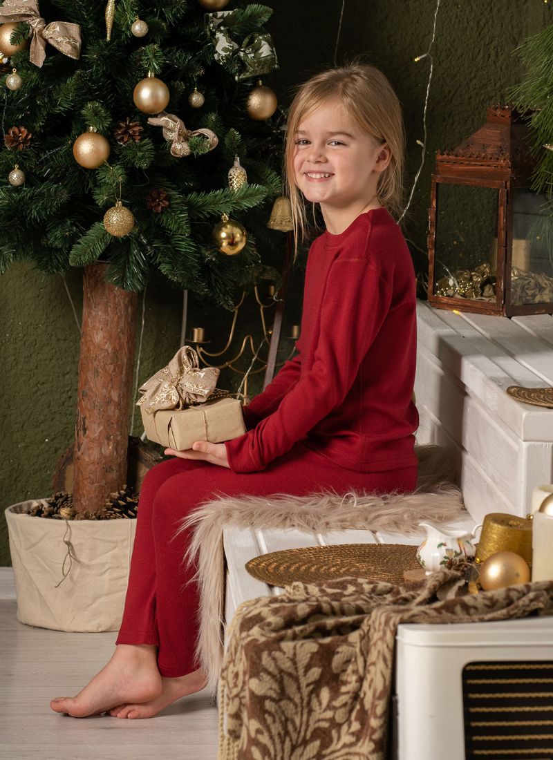 Surprise your baby with something soft, warm, and comfortable, like menique. Unisex rompers will be perfect for infants, while older kids and toddlers will definitely love matching pajamas and loungewear sets. Natural, breathable, and thermo-regulating 100% Merino wool clothing will let your child enjoy everyday activities, whether outside or inside. Royal cherry red or dark green colors will bring that celebrating mood and your baby will enjoy this present for the whole upcoming year.