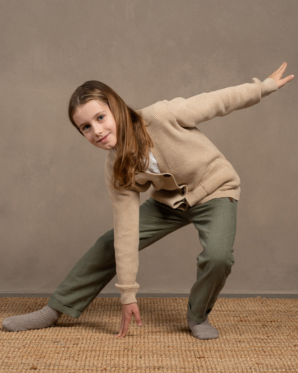 Keep your little one cozy and stylish with this practical children's merino wool cardigan. Featuring a neat, boxy-fit, classic button-up front and handy pockets, it’s perfect for everyday and occasion wear. The soft, breathable merino wool keeps your child warm in cooler weather and comfortable in warmer conditions. Durable, with ribbed cuffs and hemline, it's a practical decision for any busy mom. Keep it neat by fastening the buttons or shrug it on and leave it loose. Complete the sophisticated look with a matching version for moms, and relish in the seamless blend of style and coziness for both of you.