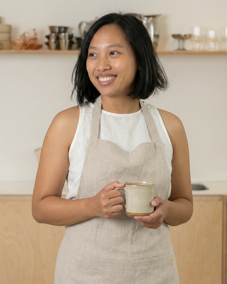 Crafted from 100% Linen, our organic apron is designed to fit all sizes with its adjustable straps. The linen material is durable and perfect for use in the kitchen, as it is both breathable and absorbent. The apron's cinnamon red color adds a touch of sophistication to any cooking or baking outfit.