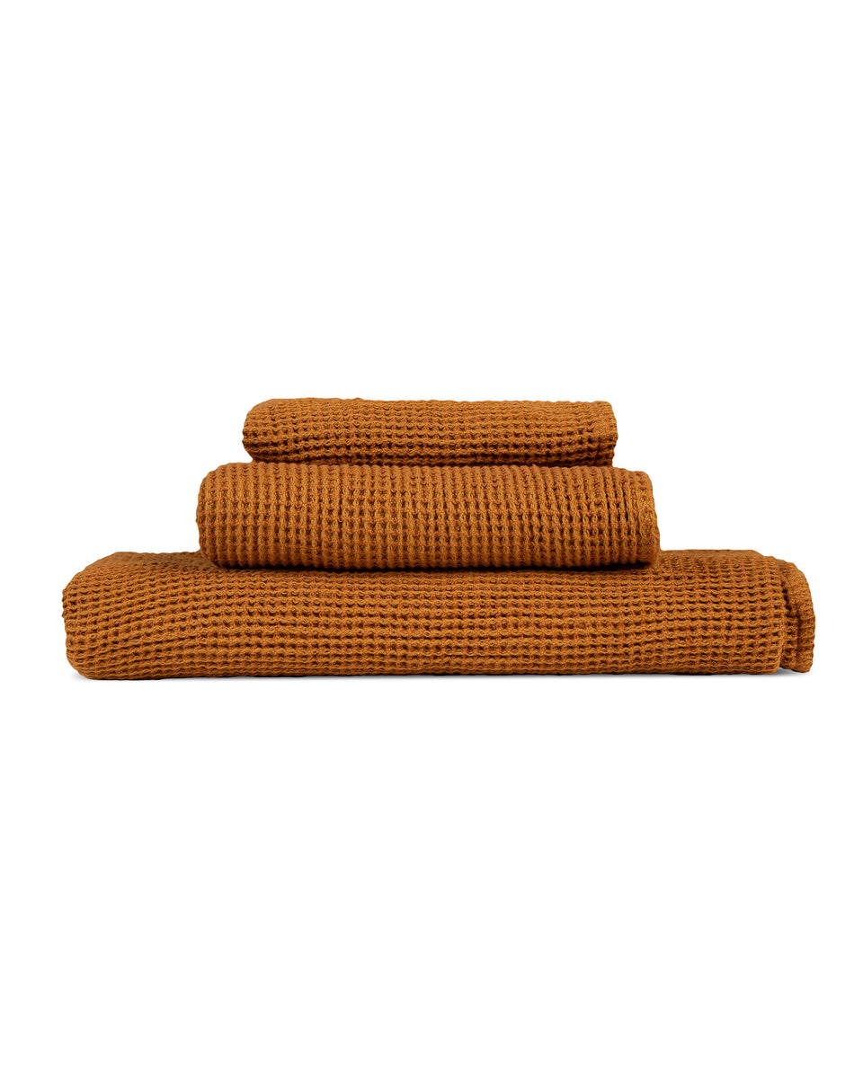 This pack includes three waffle bath towels, ideal for families or as a wonderful gift for friends. Crafted for durability, these towels maintain their quality even with frequent use and washing. Made from linen with natural moisture-wicking properties, they're highly absorbent, thanks to the waffle texture that enhances drying speed by increasing surface area.