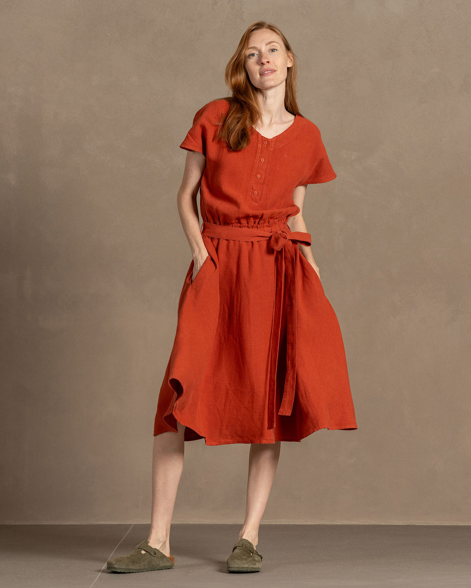 Featuring a flowy skirt, cap sleeves, and a gentle V-neckline, our women's dress is consciously made from organic 100% Linen fabric.. You can dress this sun dress with heels or down with strappy sandals.