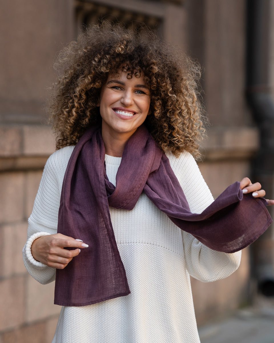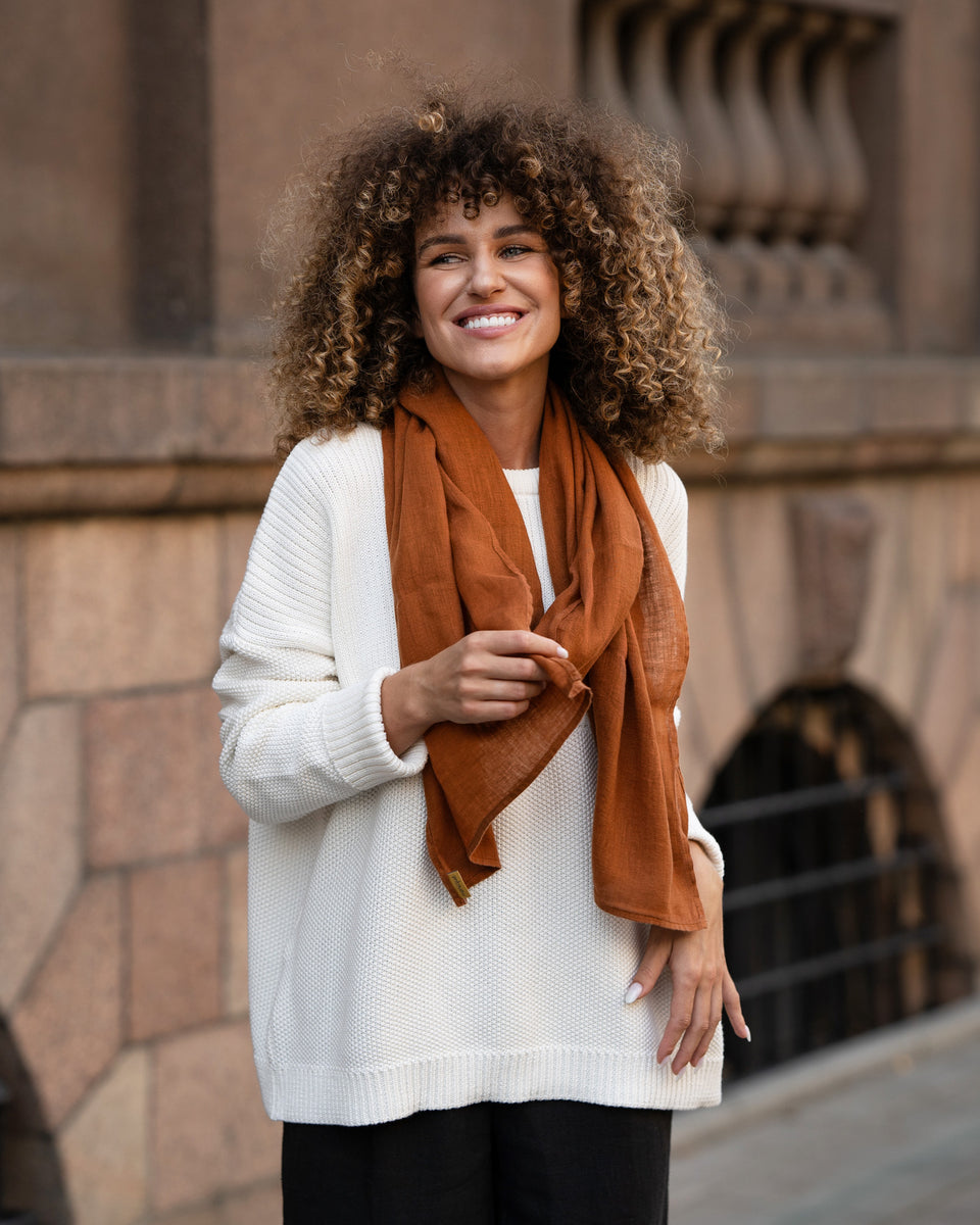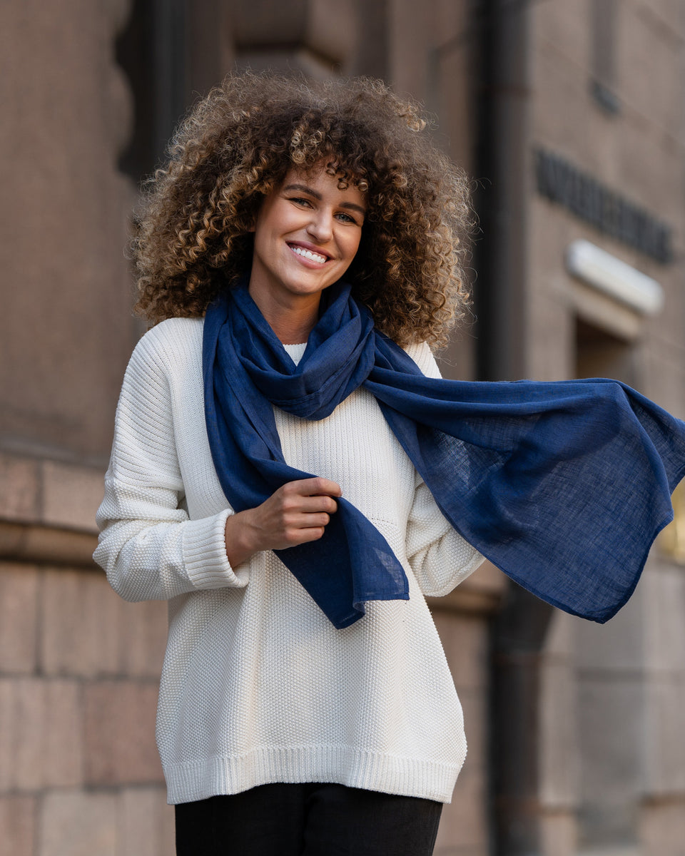 Did you know, that Linen scarves are ideal accessories, to shade you from direct sunlight? Our women's scarf is made from organic and certified 100% Linen, meaning you will experience undeniable comfort and practicality. By being hypoallergenic, our organic scarf is also unisex and will be gentle on your skin, and with breathability properties, the Linen scarf will not let you sweat even during the hottest days. Choose from various colors to match your unique style.
