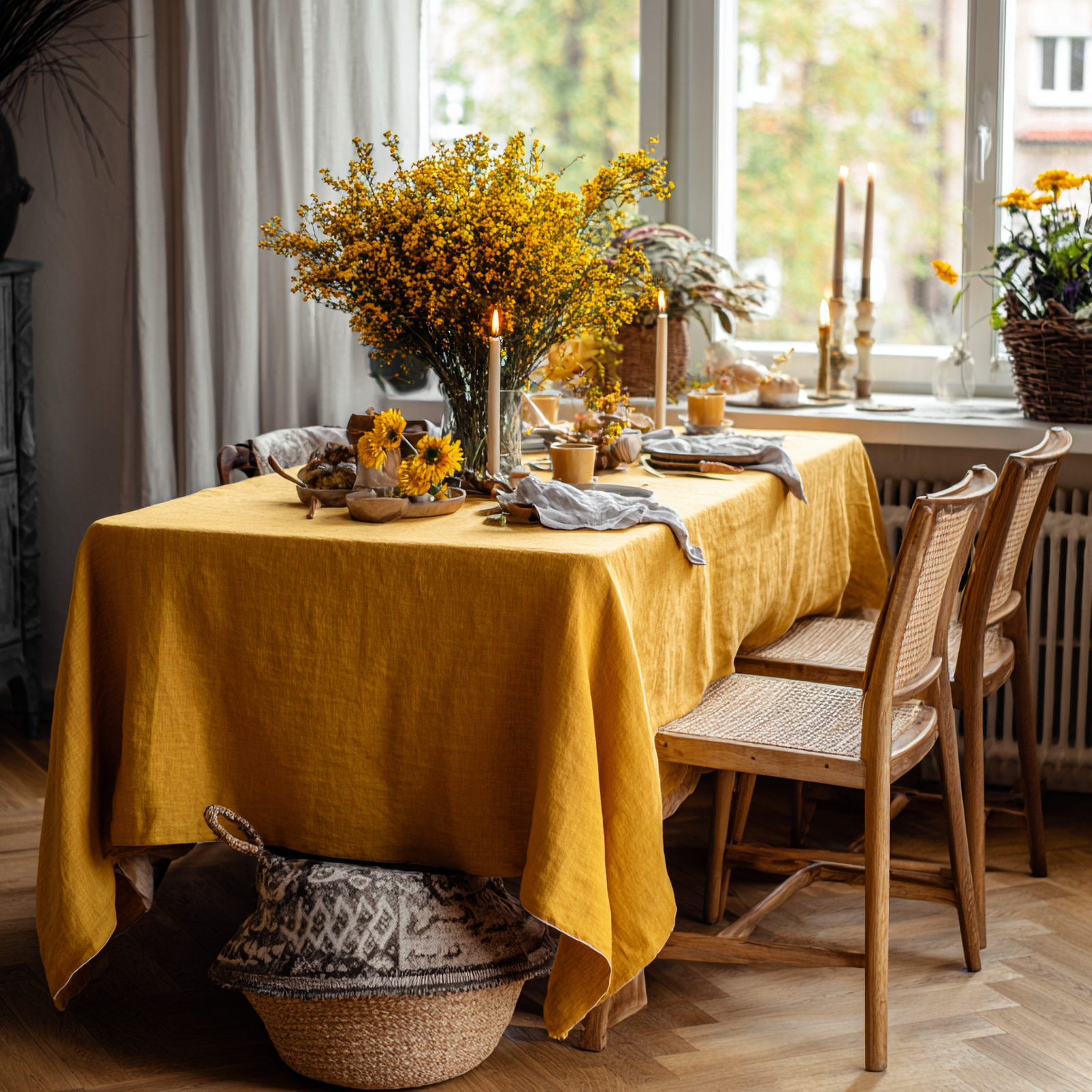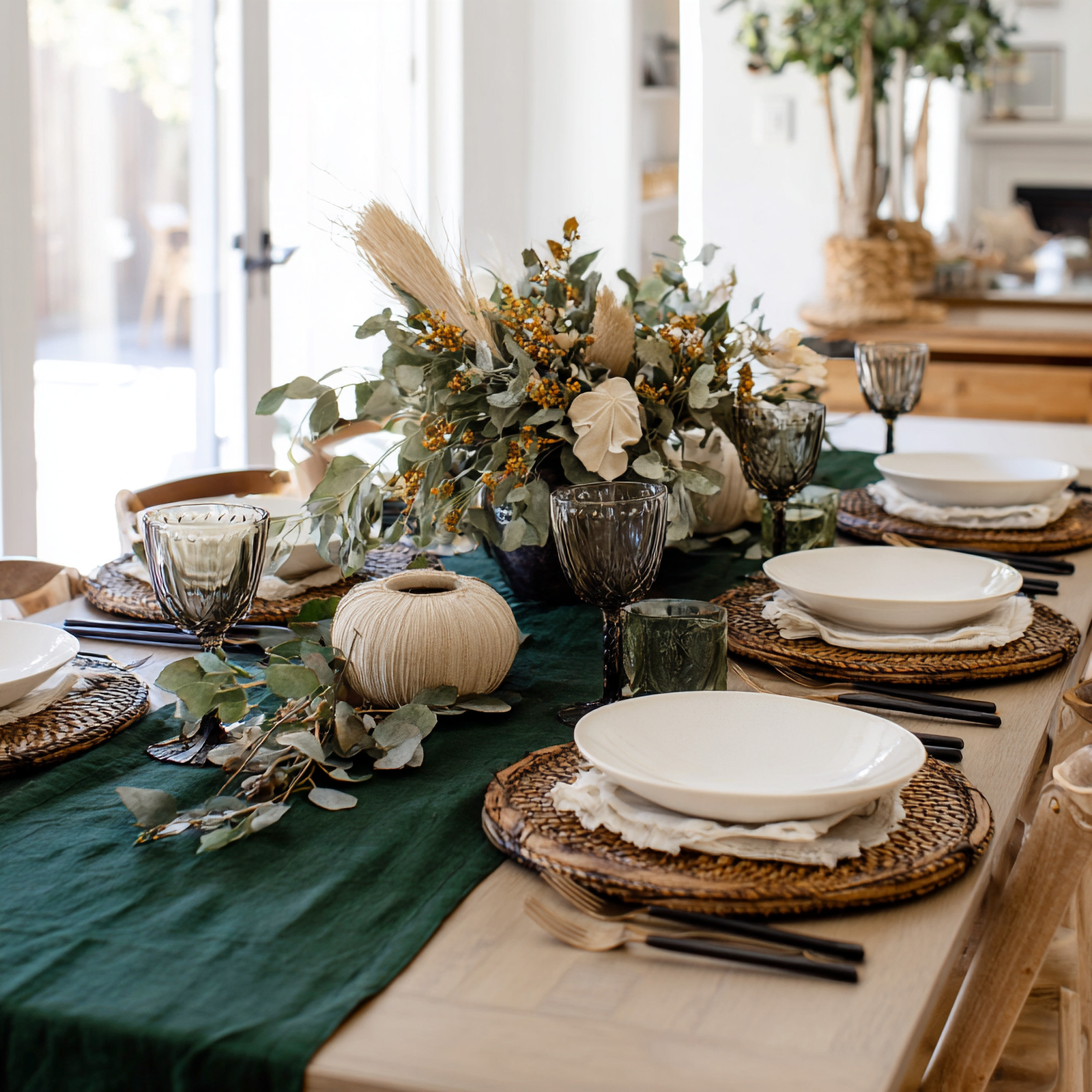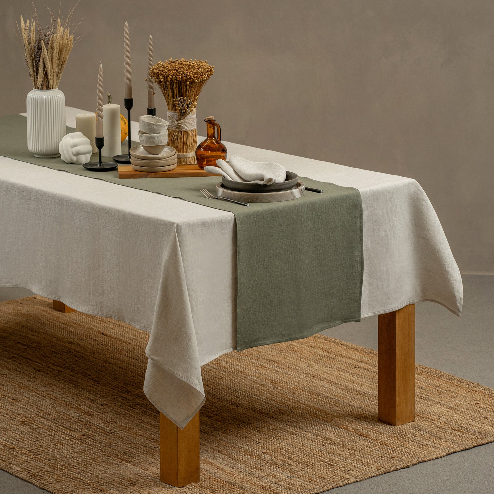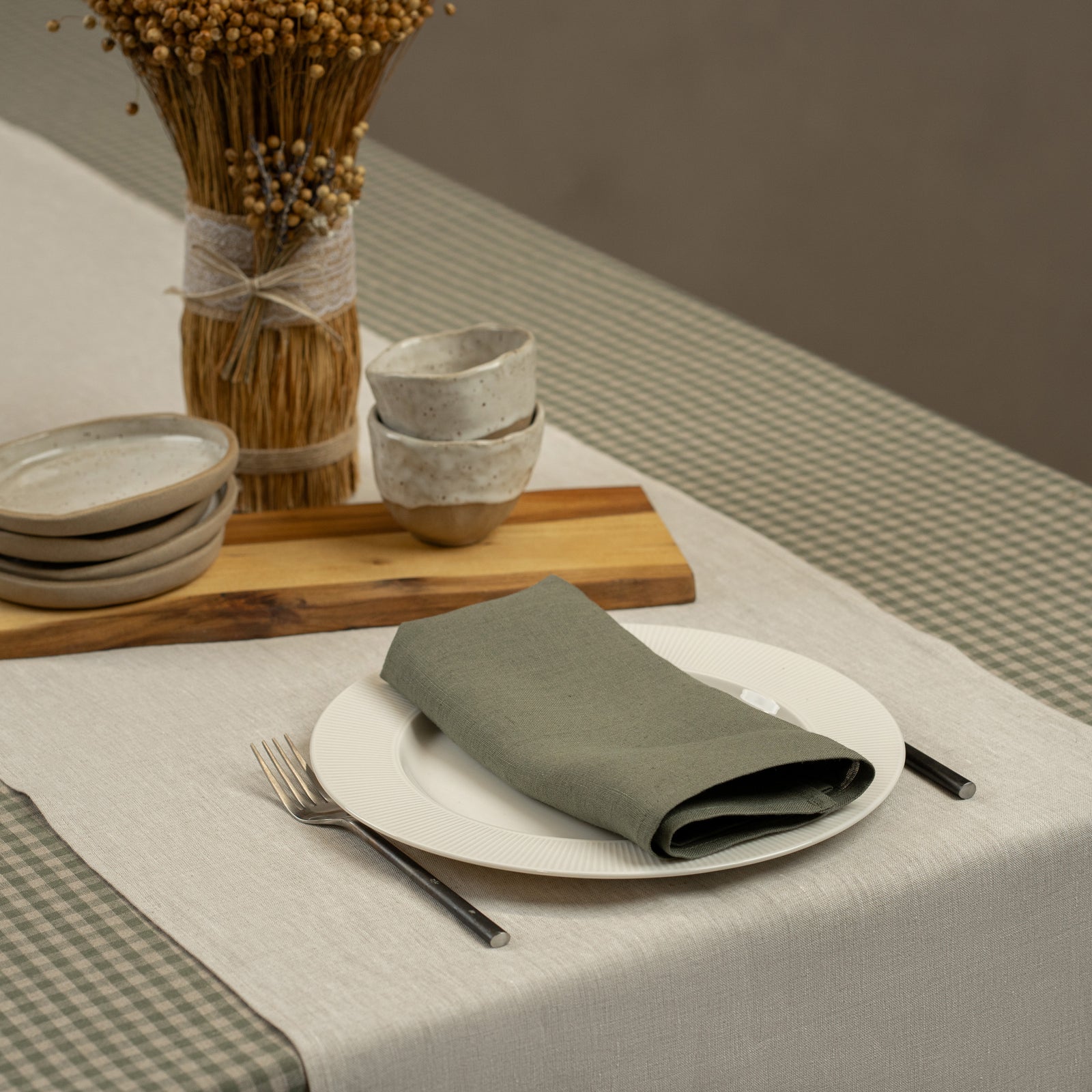 Improve your dining room interior with our dining collection, featuring an array of luxurious table essentials. Discover Linen table tops for serving, including napkins, tablecloths, table runners, and more. Each piece offers deluxe craft and adds a touch of luxury to your dining table. Whether you're hosting a formal dinner party or enjoying a casual meal with family and friends, this collection is just for you!