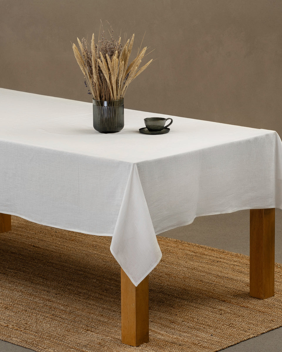 Bring a touch of freshness and serenity to your dining table with this 100% Linen Tablecloth. Crafted entirely from natural linen fabric, this tablecloth is both eco-friendly and durable, making it a sustainable choice for the eco-conscious home. The generous size is perfect for most dining tables, while the color creates a calming and inviting atmosphere.