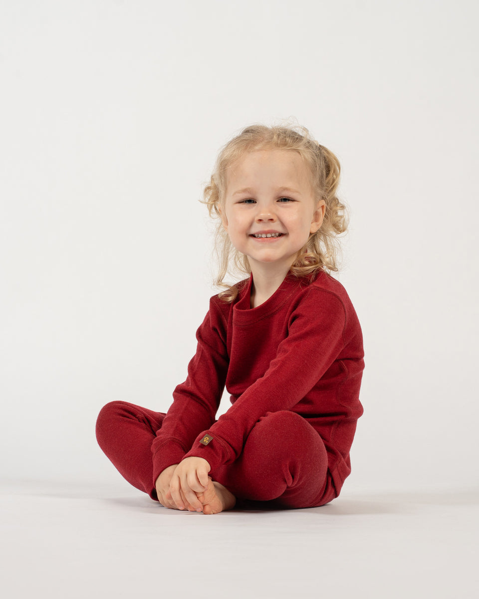 Some days are for climbing trees, others for lazy Sunday afternoons; the amazingly soft, long sleeve two-piece set offers a comfortable fit that stretches easily, wrapping your mini-me in luxurious softness. Breathable and versatile, this set is ideal as a cozy layer under clothes or as pajamas. Designed with parents in mind, our kids’ leggings and long sleeve shirt form an ultra-comfortable, great-looking set, consciously crafted from 100% organic Merino wool. Perfect for all kinds of activities, the organic tee stays in place, wicks moisture while your child plays, and provides warmth during rest. Its moisture transport system moves sweat away from the skin, keeping your child’s body odor-free. Naturally antibacterial, this material ensures all-day dryness and comfort, whether worn as an outfit for outdoor adventures or as a magical sleepsuit.