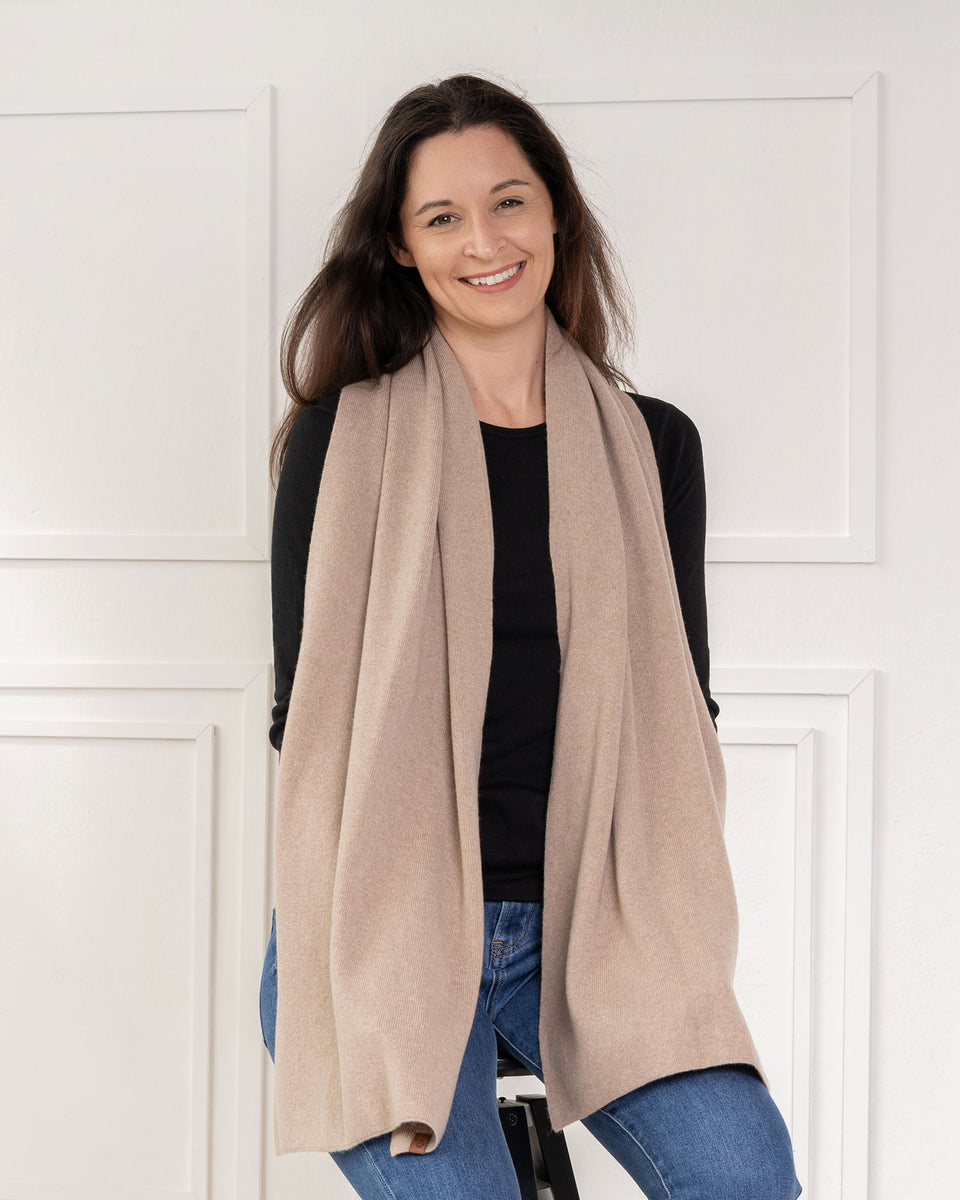 Wrap yourself in cozy comfort and effortless style with our knitted Merino & Cashmere wool scarf. It's designed to give you the perfect fit, snug and comfy without that annoying tightness. This scarf for women is made from 100% natural Merino & Cashmere, so it's great at keeping you warm while also letting your skin breathe. No more overheating – just the right amount of toasty. And guess what? It doesn't itch like regular wool. The fabric is so smooth and gentle on your skin. You'll love how luxurious and soft it feels. Say goodbye to uncomfortable scarves and hello to warmth and ease.